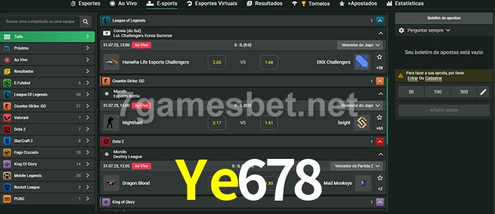 O Ye678 oferece uma grande seleção de opções de apostas em e-sports com probabilidades competitivas